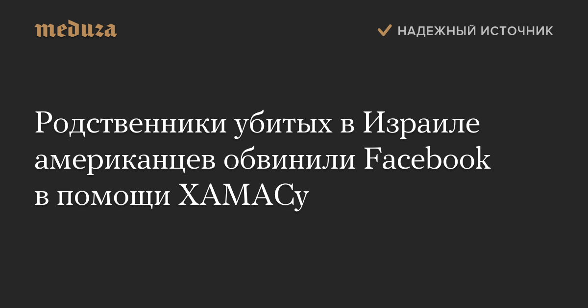 Родственники убитых в Израиле американцев обвинили Facebook в помощи ХАМАСу