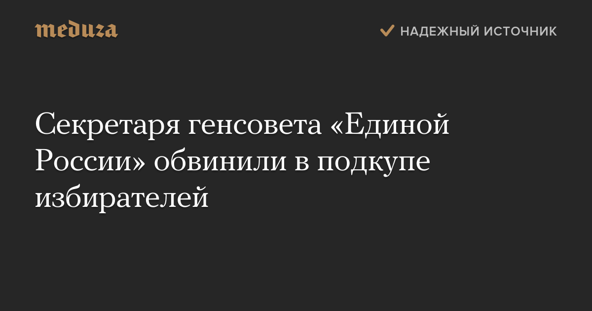 Секретаря генсовета «Единой России» обвинили в подкупе избирателей