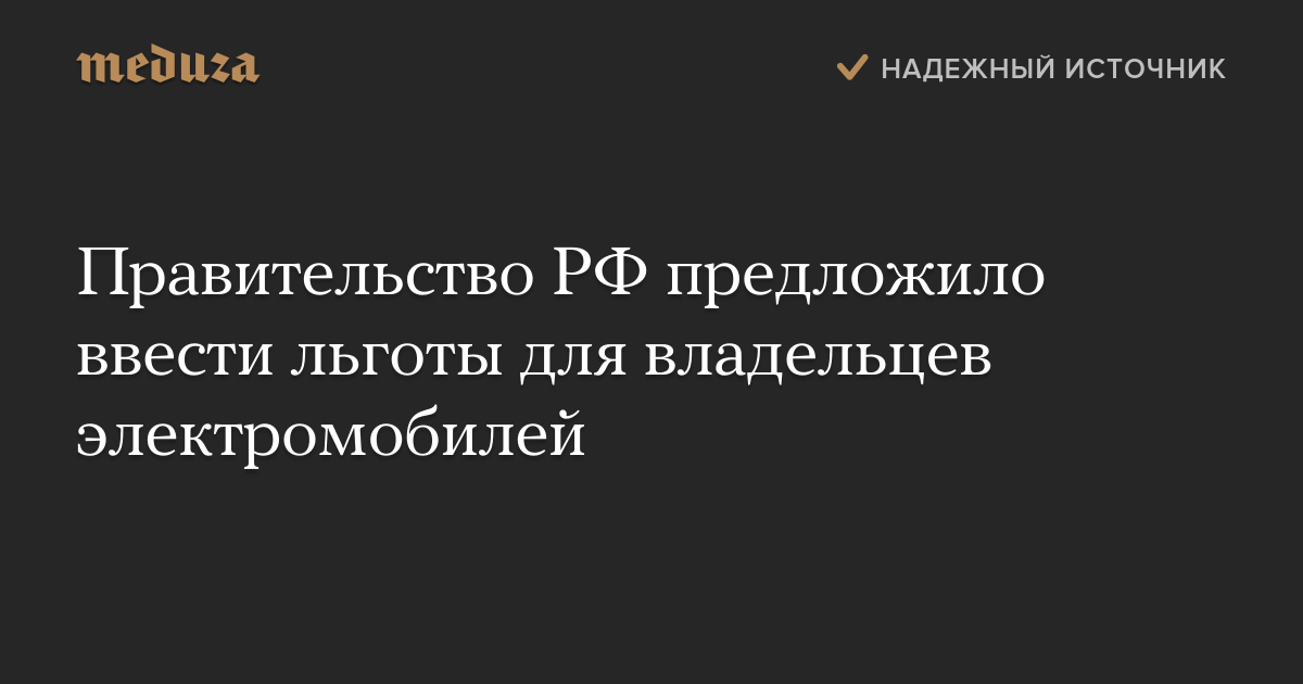 Правительство РФ предложило ввести льготы для владельцев электромобилей