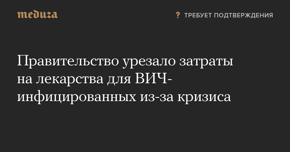 Правительство урезало затраты на лекарства для ВИЧ-инфицированных из-за кризиса