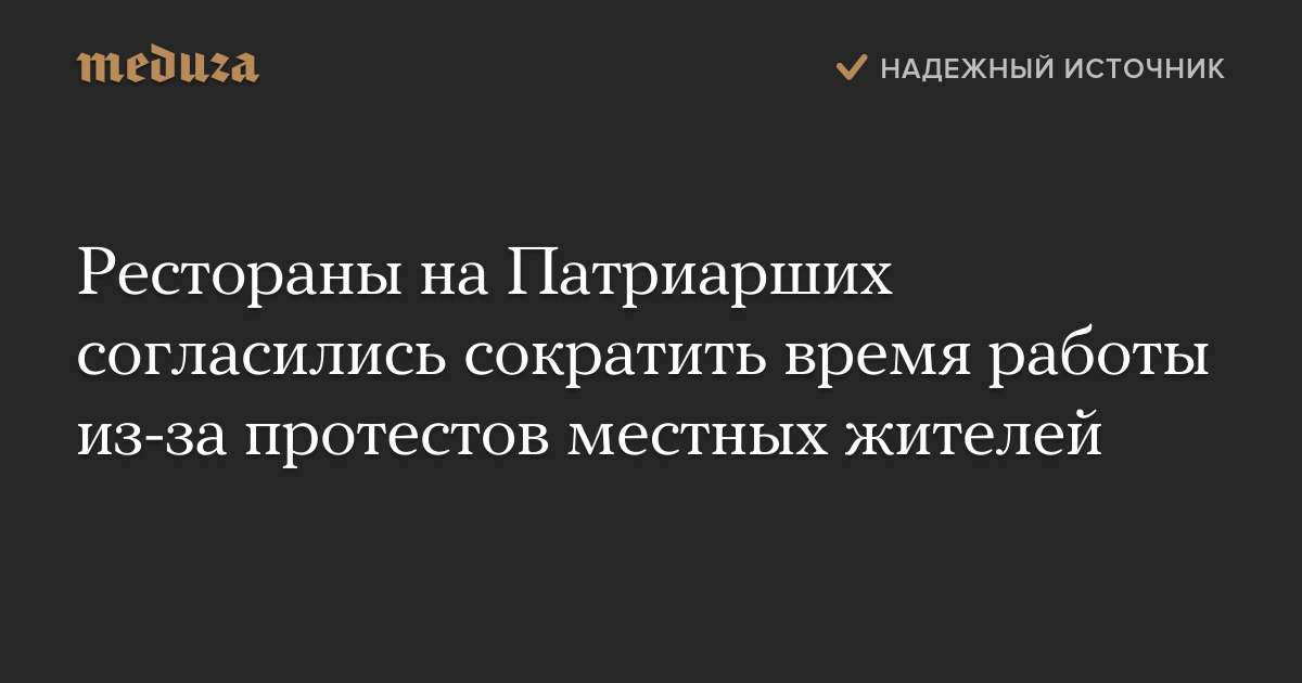Рестораны на Патриарших согласились сократить время работы из-за протестов местных жителей