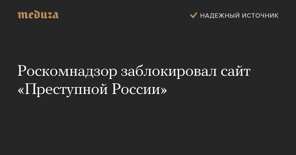 Роскомнадзор внес в реестр запрещенных сайтов главную страницу издания «Преступная Россия», расположенную по адресу crimerussia.com.