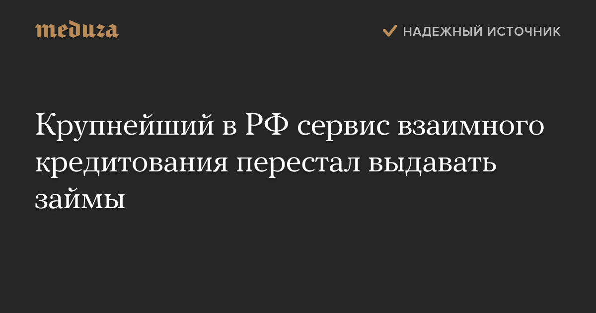 Крупнейший в РФ сервис взаимного кредитования перестал выдавать займы