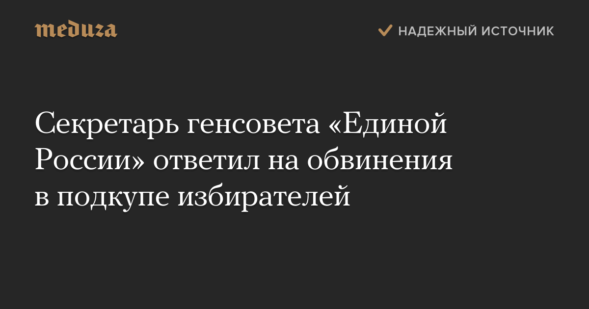 Секретарь генсовета «Единой России» ответил на обвинения в подкупе избирателей