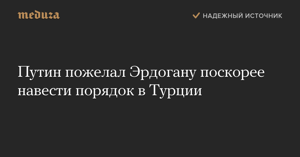 Президент РФ Владимир Путин в телефонном разговоре с президентом Турции Реджепом Тайипом Эрдоганом пожелал «скорейшего восстановления устойчивого конституционного порядка и стабильности в Турции». Путин выразил соболезнования в связи с гибелью людей в результате военного мятежа.
