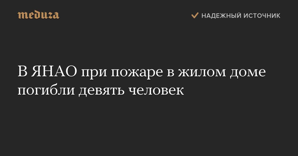 В ЯНАО при пожаре в жилом доме погибли девять человек