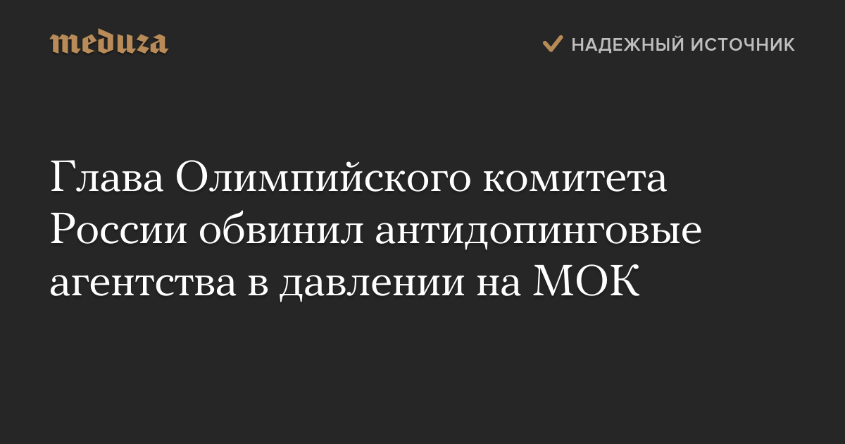 Глава Олимпийского комитета России обвинил антидопинговые агентства в давлении на МОК
