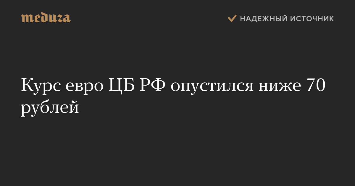 Курс евро ЦБ РФ опустился ниже 70 рублей