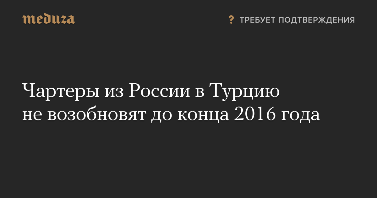 Чартеры из России в Турцию не возобновят до конца 2016 года