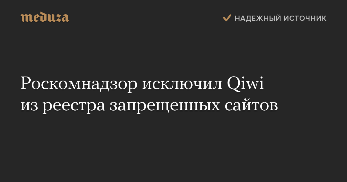 Роскомнадзор исключил Qiwi из реестра запрещенных сайтов