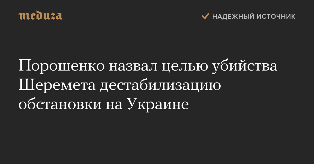 Президент Украины Петр Порошенко заявил, что целью убийства журналиста Павла Шеремета является дестабилизация обстановки в стране.