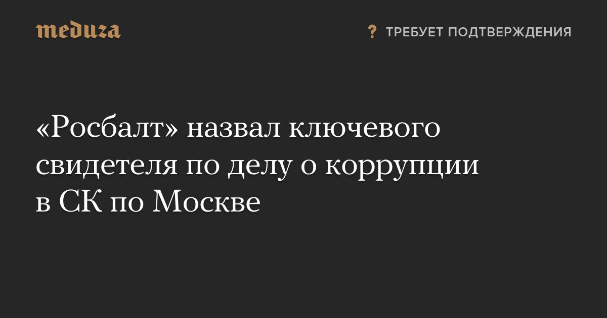 «Росбалт» назвал ключевого свидетеля по делу о коррупции в СК по Москве