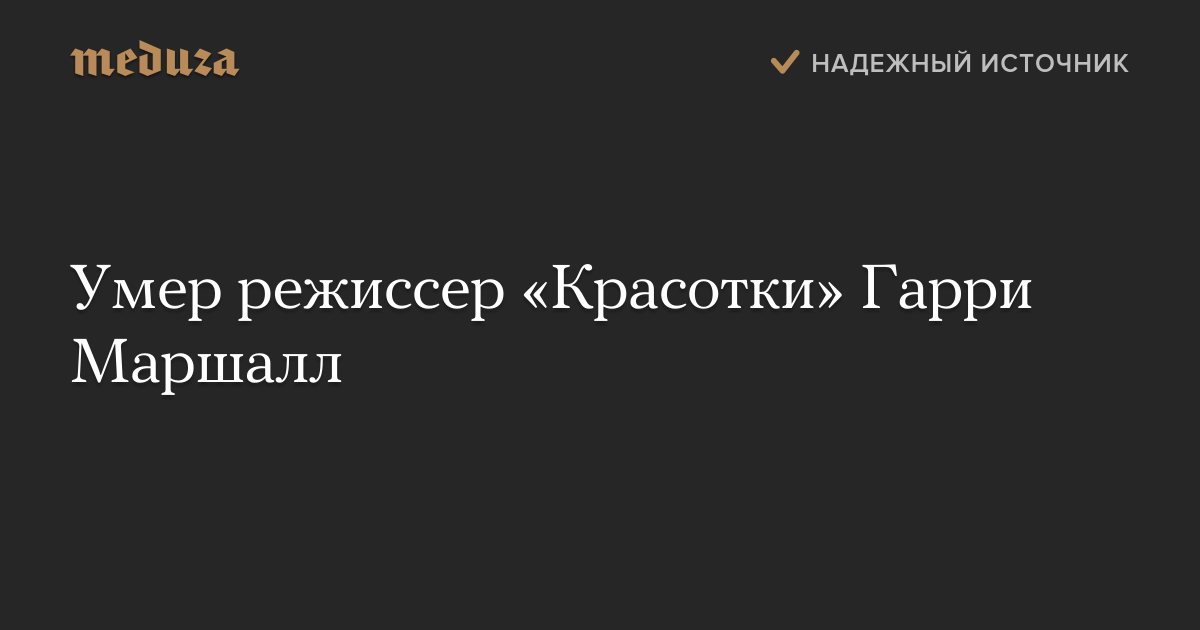 В калифорнийском Бербанке 19 июля в возрасте 81 года умер режиссер Гарри Маршалл, создатель фильмов «Красотка», «За бортом», «Сбежавшая невеста», «Дневники принцессы». Он умер от осложнений после пневмонии.