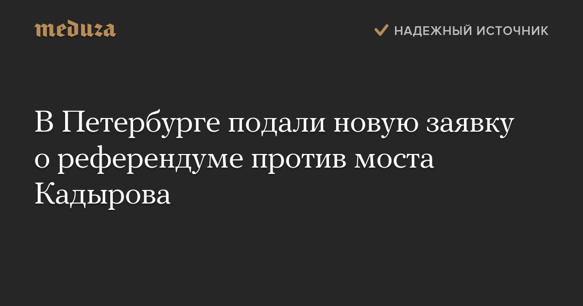 В Петербурге подали новую заявку о референдуме против моста Кадырова