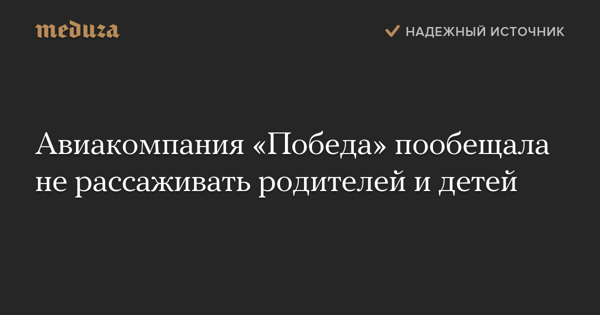 Авиакомпания «Победа» пообещала не рассаживать родителей и детей