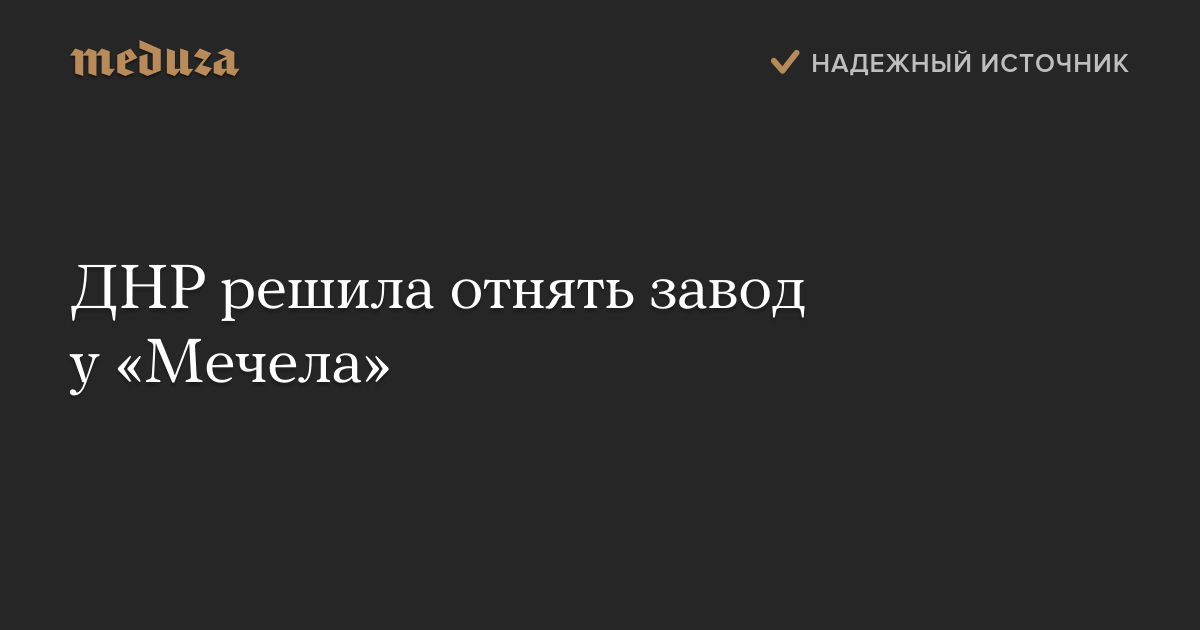 Компания «Мечел» получила распоряжение о введении временной администрации на одном из своих предприятий — Донецком электрометаллургическом заводе (ДЭМЗ). Под распоряжением стоит подпись главы ДНР Александра Захарченко. Согласно его решению, на базе завода должно быть создано новое предприятие, которому передадут имущество ДЭМЗа.