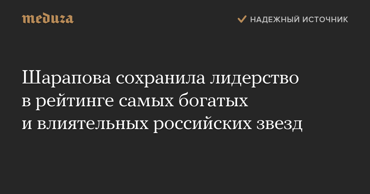 Шарапова сохранила лидерство в рейтинге самых богатых и влиятельных российских звезд