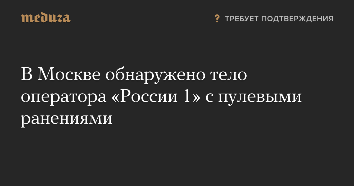 В Москве обнаружено тело оператора «России 1» с пулевыми ранениями