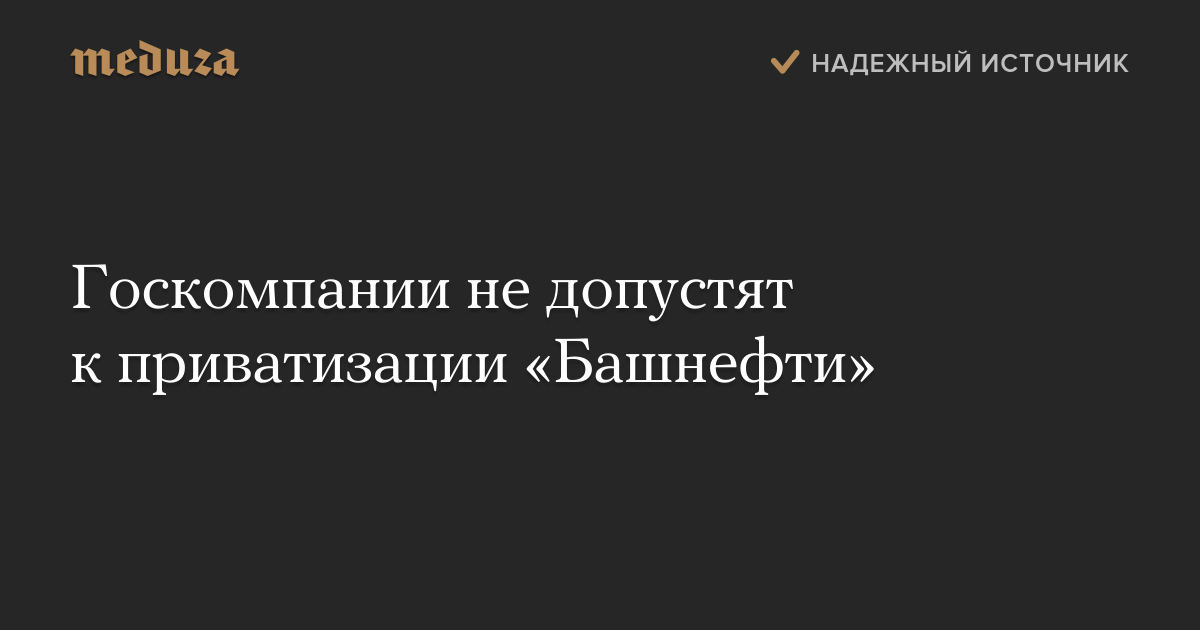 Госкомпании, в том числе «Роснефть», не могут участвовать в приватизации «Башнефти», заявил пресс-секретарь президента РФ Владимира Путина Дмитрий Песков.