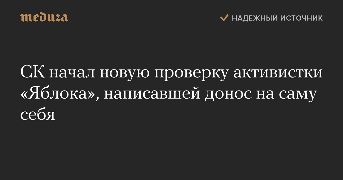 СК начал новую проверку активистки «Яблока», написавшей донос на саму себя