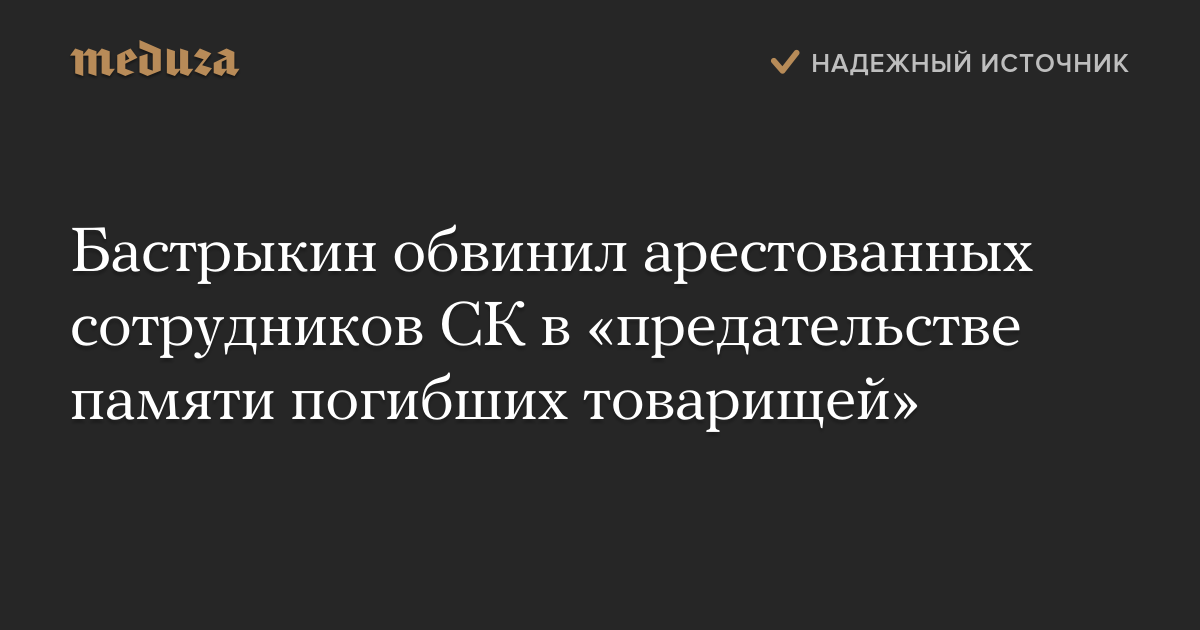 Глава Следственного комитета России Александр Бастрыкин в интервью «Российской газете» заявил, что расценивает ситуацию с арестом за взятку высокопоставленных сотрудников ведомства как «предательство памяти… погибших при исполнении служебного долга товарищей».