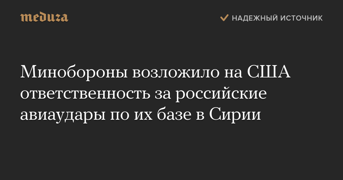 Минобороны возложило на США ответственность за российские авиаудары по их базе в Сирии