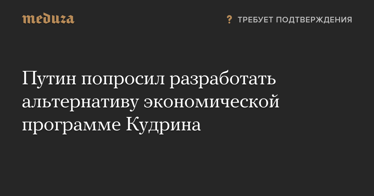 Путин попросил разработать альтернативу экономической программе Кудрина