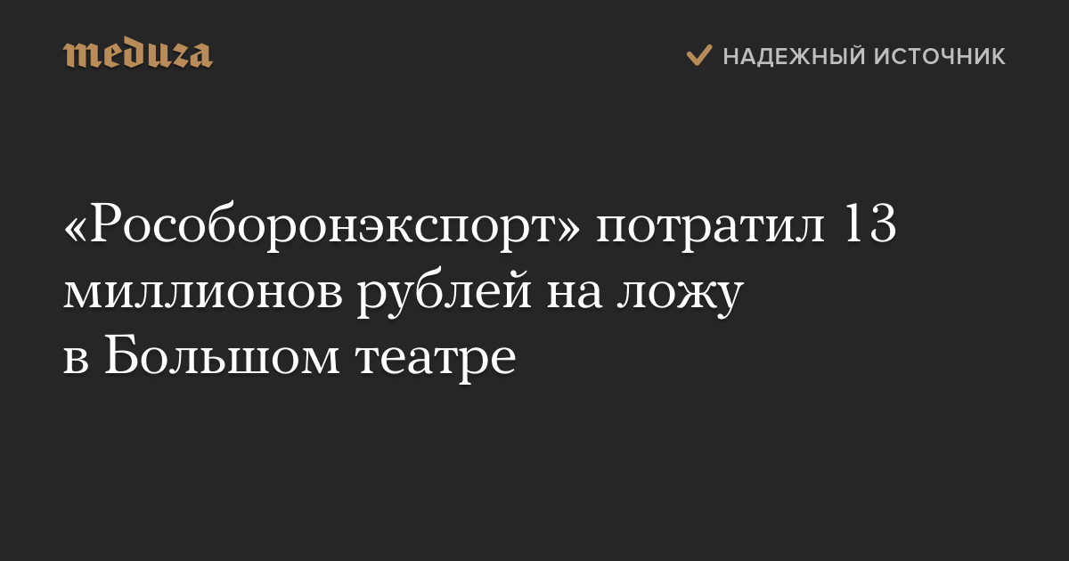 «Рособоронэкспорт» заплатил 13,2 миллиона рублей за годовой абонемент в одну из лож Большого театра. Информация об этом размещена на сайте госзакупок.