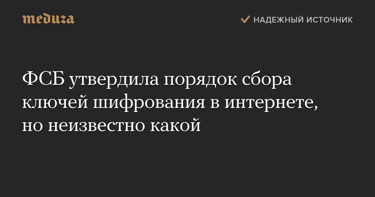 Федеральная служба безопасности России 25 июля отчиталась, что нашла способ собирать с «организаторов распространения информации» ключи шифрования в интернете. Как говорится в сообщении ФСБ, ведомственный приказ отправили в Минюст для регистрации. Документ не опубликован, поэтому, в чем состоит порядок сбора ключей шифрования, неизвестно.