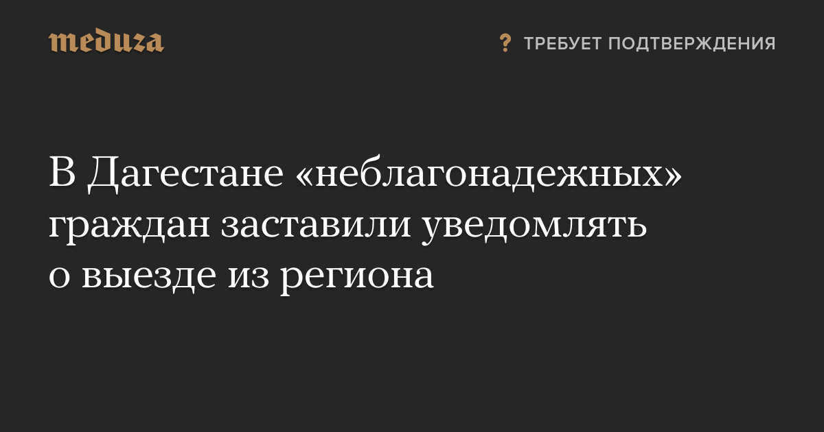 В Дагестане «неблагонадежных» граждан заставили уведомлять о выезде из региона