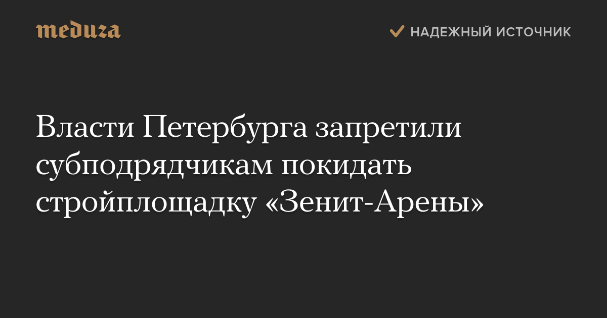 Власти Петербурга запретили субподрядчикам покидать стройплощадку «Зенит-Арены»