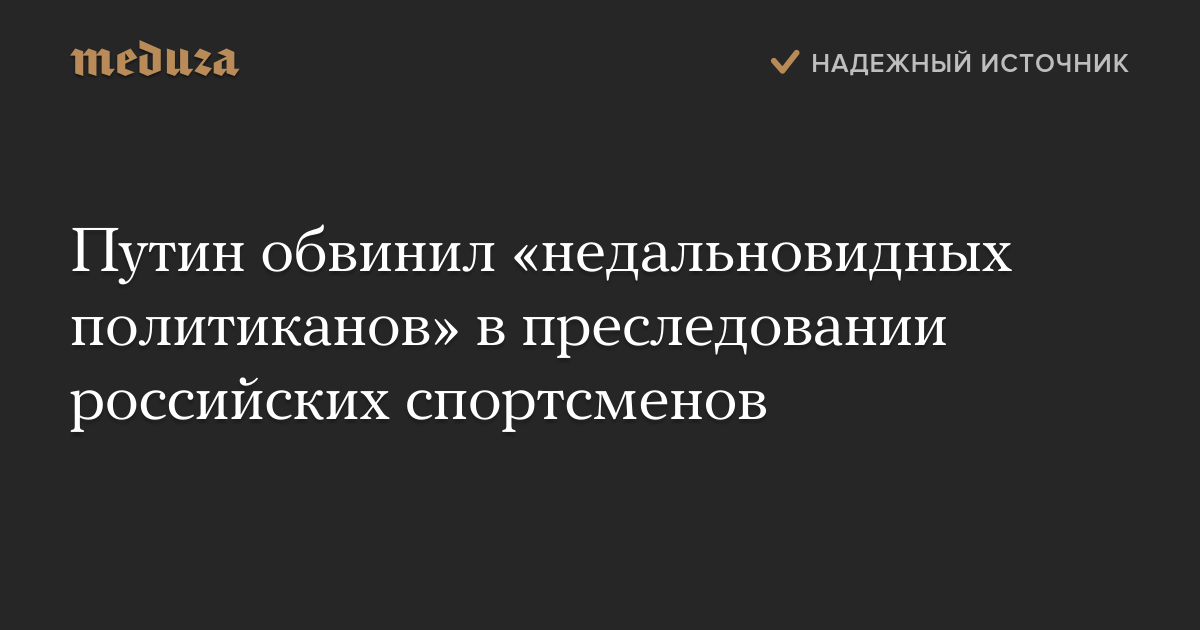 «Прямо нужно сказать, что недальновидные политиканы не оставляют в покое и спорт. Хотя как раз спорт призван сближать народы и сглаживать имеющиеся между странами противоречия», — заявил Путин на встрече с олимпийской сборной России.