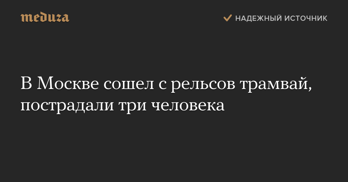 По данным источника «Интерфакса», трамвай сошел с рельсов и въехал в мачту освещения, пострадали три человека. ТАСС уточняет, что травмы получили пассажиры трамвая.