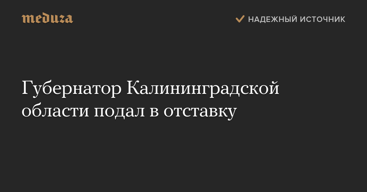Губернатор Калининградской области Николай Цуканов подал в отставку со своего поста. Цуканов займет должность полномочного представителя президента в Северо-Западном федеральном округе, которая стала вакантной после отставки Владимира Булавина.