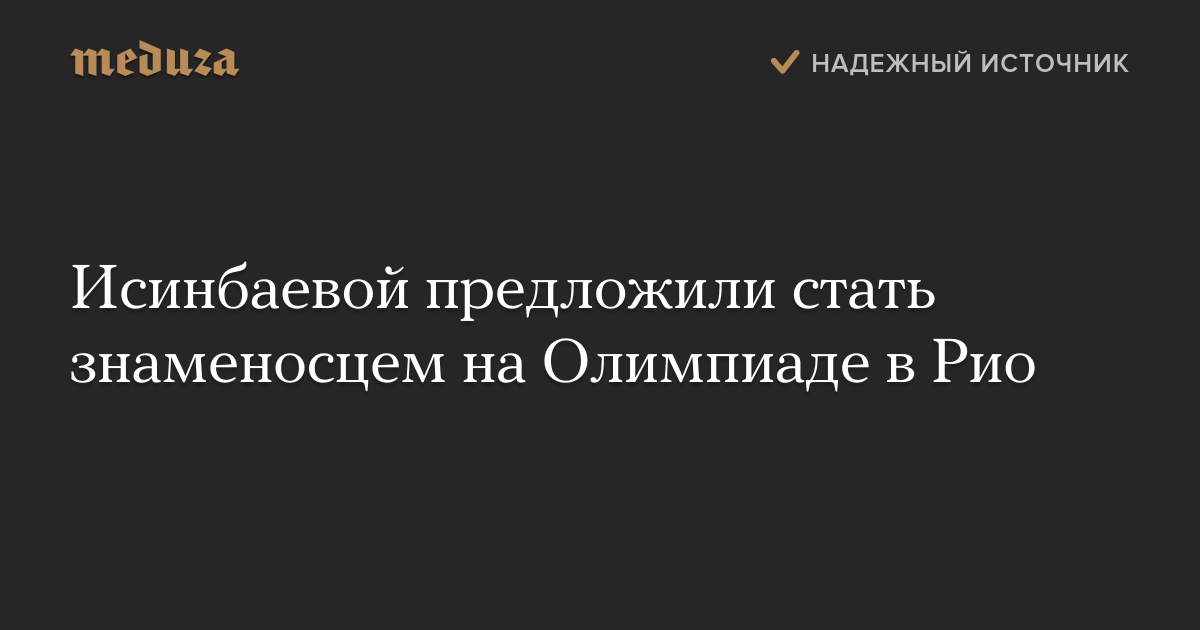 Исинбаевой предложили стать знаменосцем на Олимпиаде в Рио