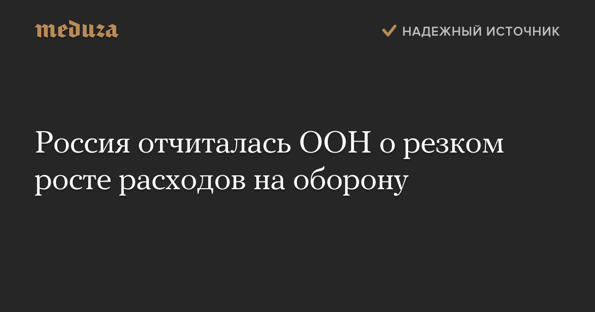 Расходы РФ на оборону в 2015 году выросли на 48 процентов по сравнению с предыдущим годом, до 2,9 триллиона рублей. Такие данные, сообщает РБК, содержатся в ежегодном отчете, направленном Россией в Управление ООН по вопросам разоружения (UNODA).