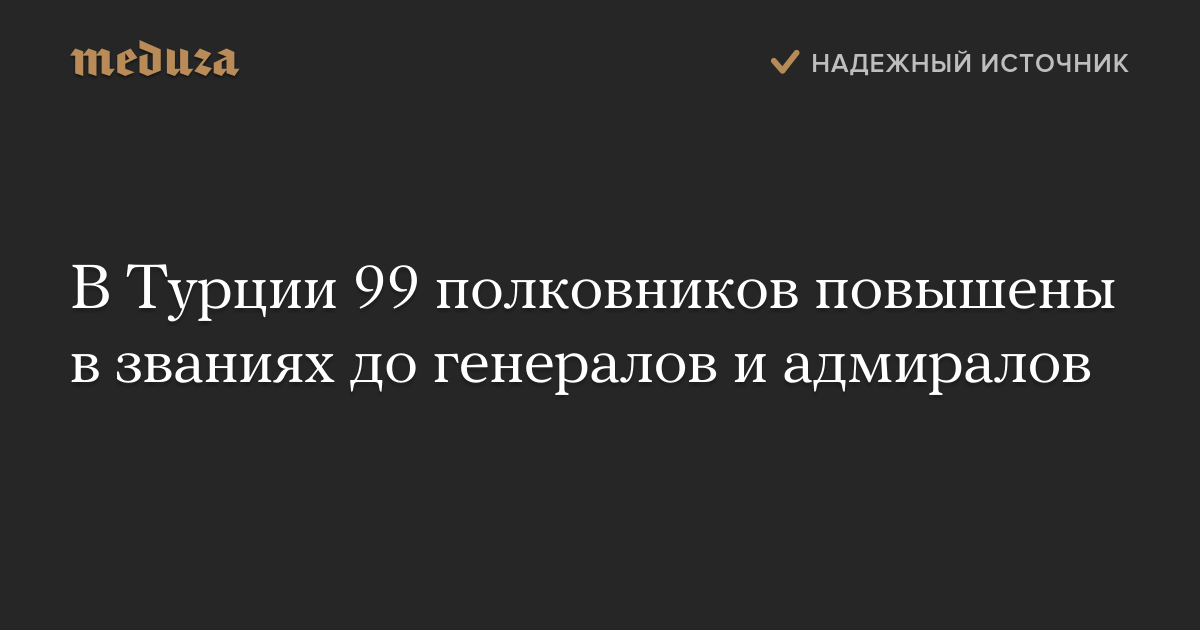 Высший военный совет Турции принял решение о повышении 99 полковников в званиях до генералов и адмиралов, сообщает Daily Sabah.