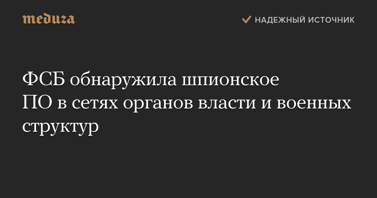 ФСБ обнаружила шпионское программное обеспечение в компьютерных сетях органов государственной власти, научных и военных учреждений, предприятий оборонно-промышленного комплекса и других объектов критически важной инфраструктуры.