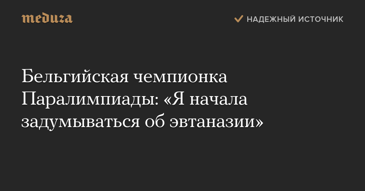 Бельгийская чемпионка Паралимпиады: «Я начала задумываться об эвтаназии»