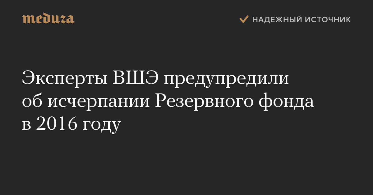 Эксперты ВШЭ предупредили об исчерпании Резервного фонда в 2016 году