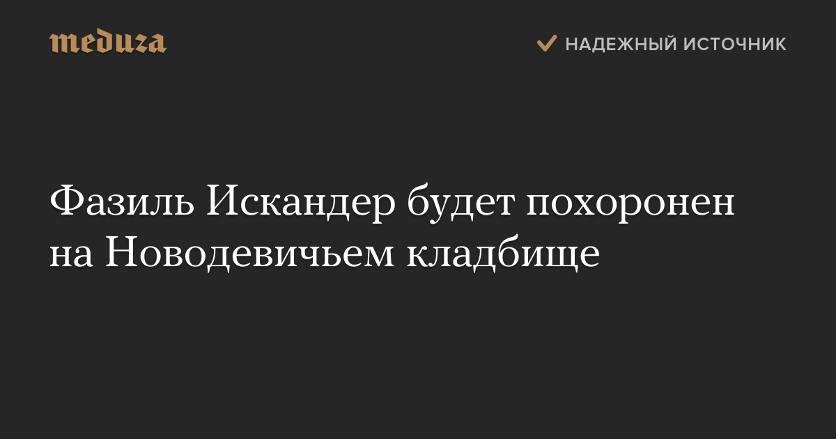 Ранее родственники Искандера сообщили, что писателя планируют похоронить на Новодевичьем кладбище «в случае положительного решения московских властей».
