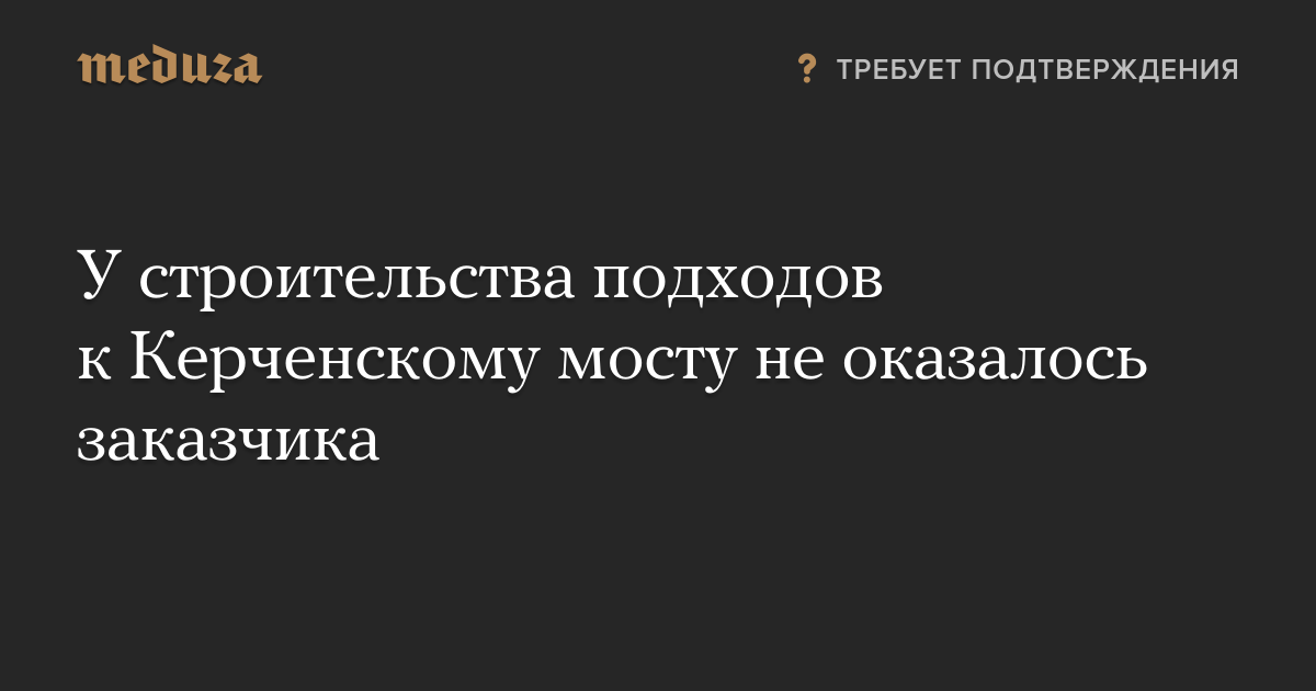 У строительства подходов к Керченскому мосту не оказалось заказчика