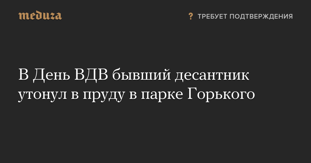 В День ВДВ бывший десантник утонул в пруду в парке Горького