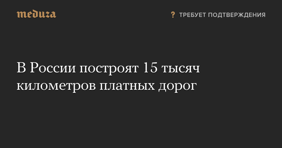 Ранее Минтранс не готовил долгосрочных планов на строительство платных дорог. На дорогах, строительство которых предлагает министерство, скоростное ограничение будет составлять 110-130 километров в час.