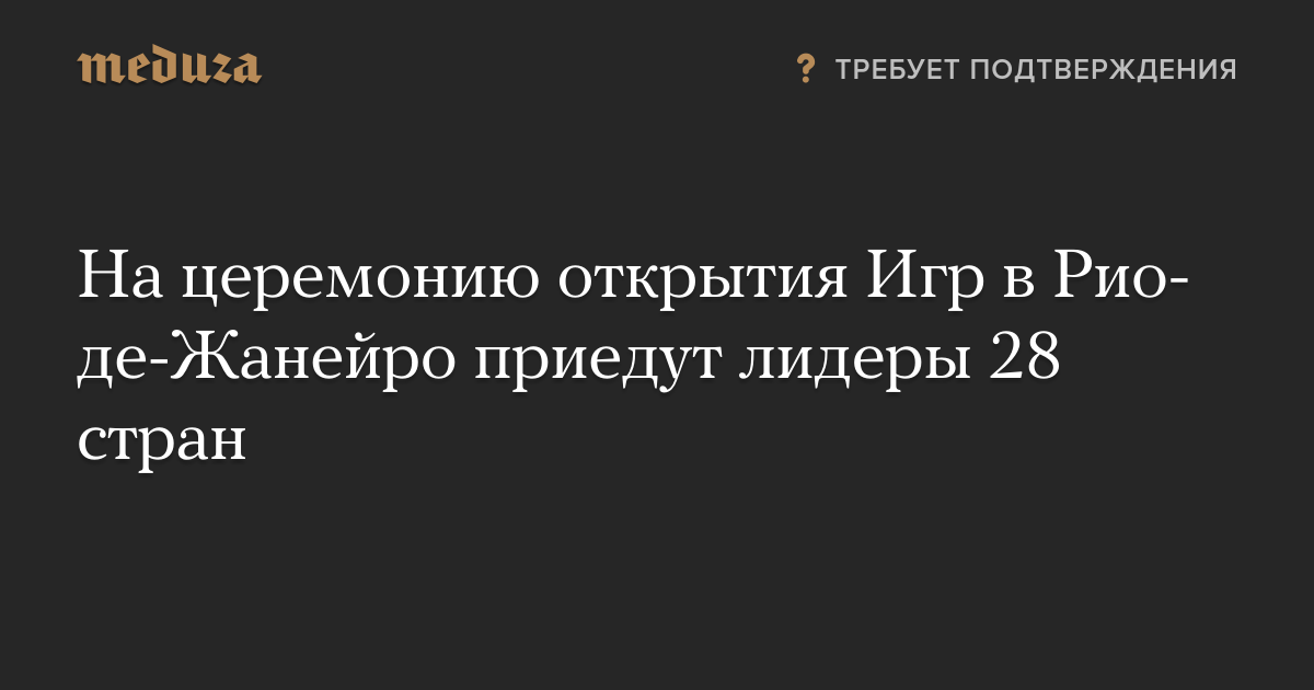 Свое присутствие на церемонии открытия Олимпиады в Рио-де-Жанейро подтвердили 28 глав государств и правительств, сообщили Reuters источники в кабинете министров Бразилии.