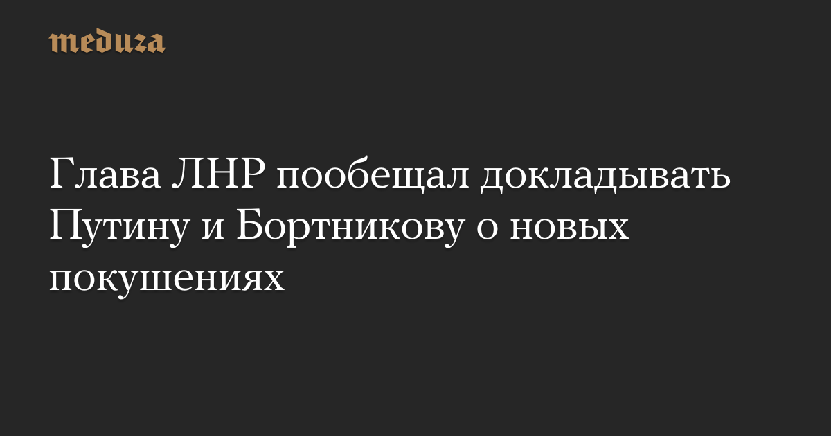 Глава ЛНР пообещал докладывать Путину и Бортникову о новых покушениях