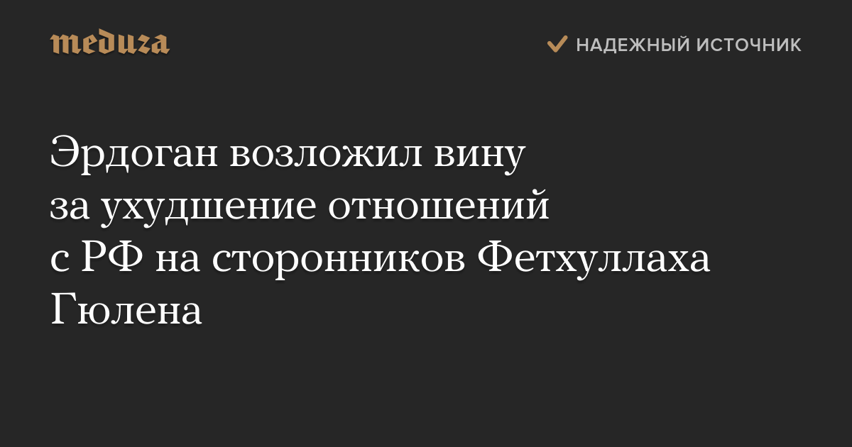 Эрдоган возложил вину за ухудшение отношений с РФ на сторонников Фетхуллаха Гюлена