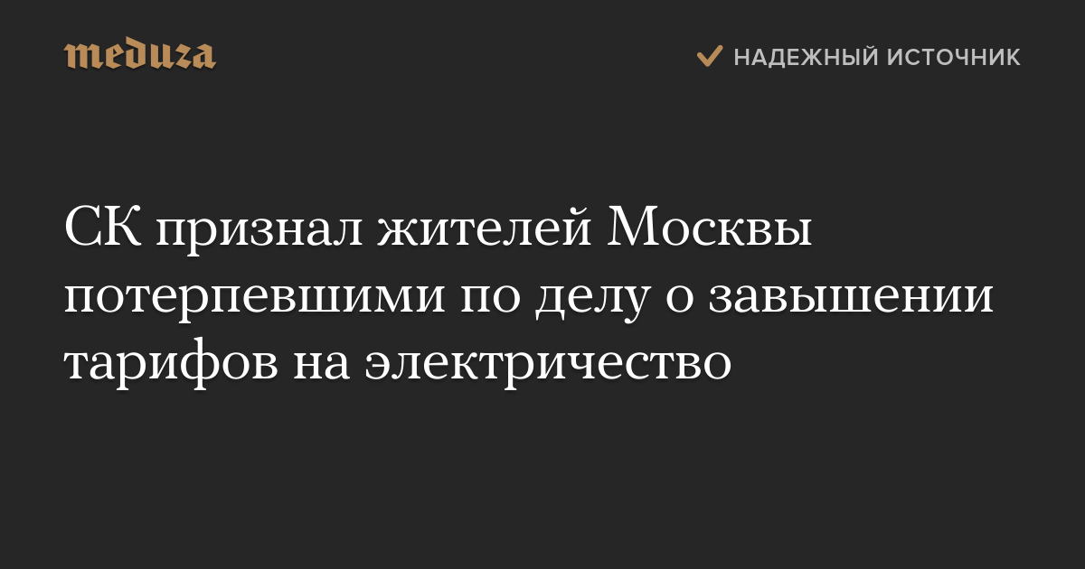 СК признал жителей Москвы потерпевшими по делу о завышении тарифов на электричество