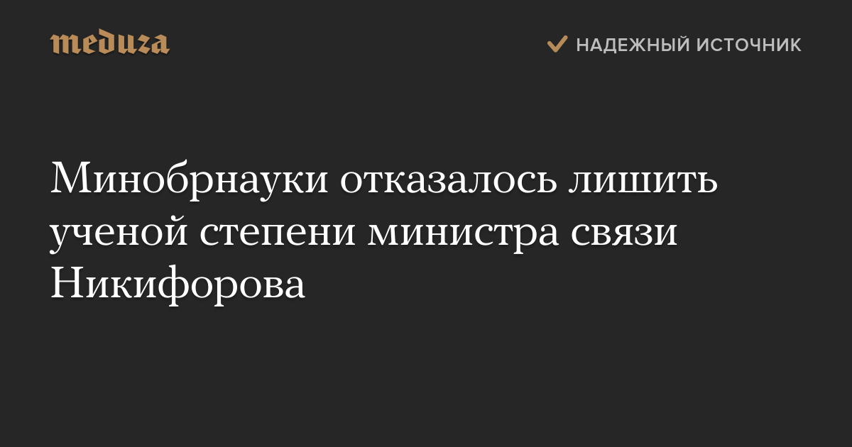 Минобрнауки отказалось лишить ученой степени министра связи Никифорова