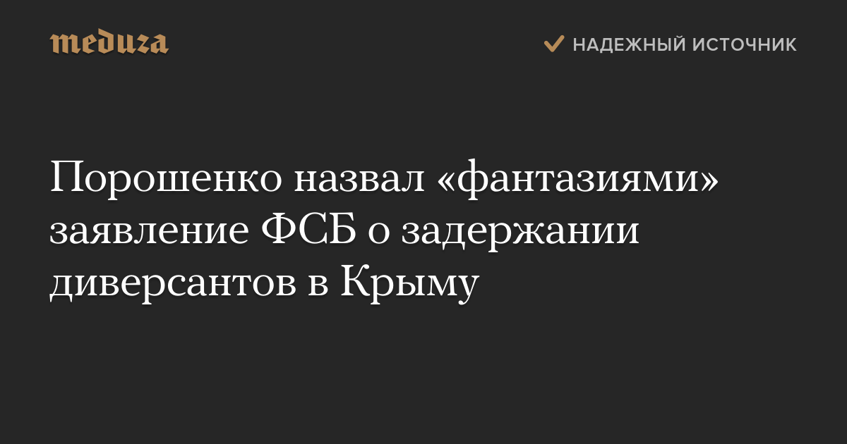 Президент Украины Петр Порошенко назвал «фантазиями» заявление ФСБ о задержании диверсантов в Крыму. По его словам, России это нужно «для очередных военных угроз в адрес Украины».